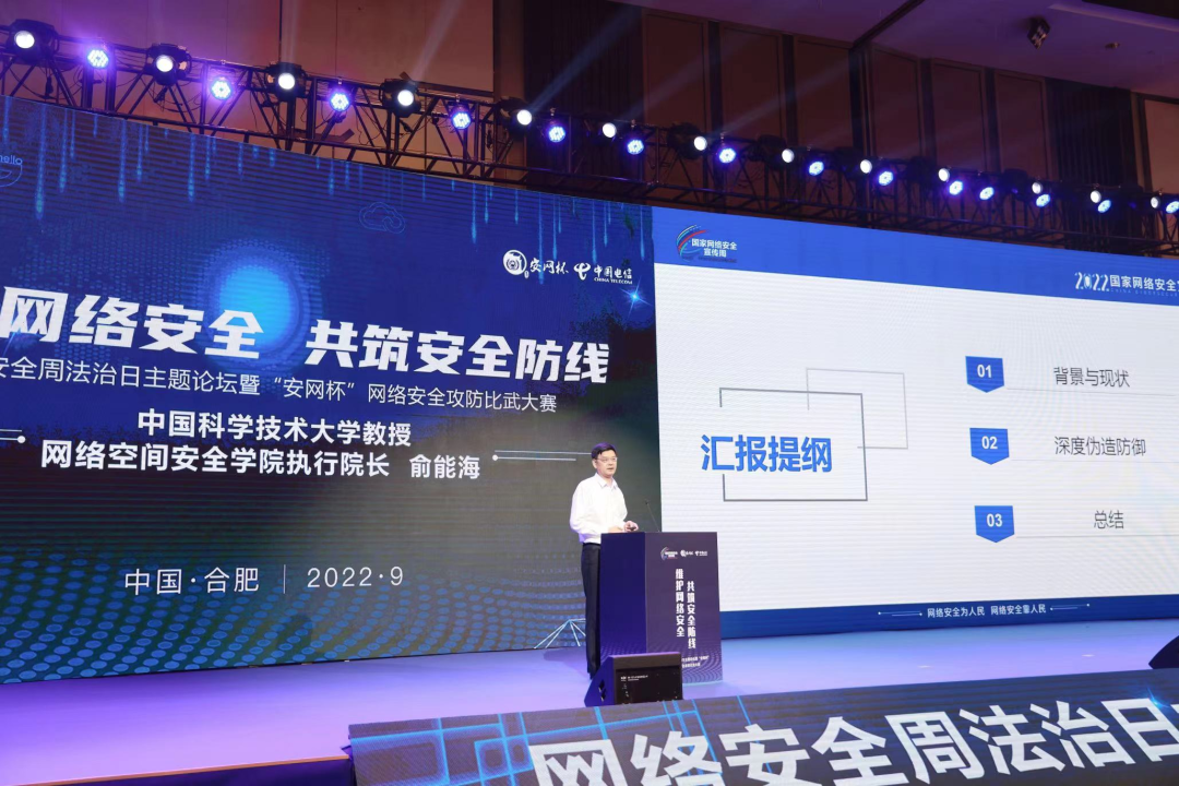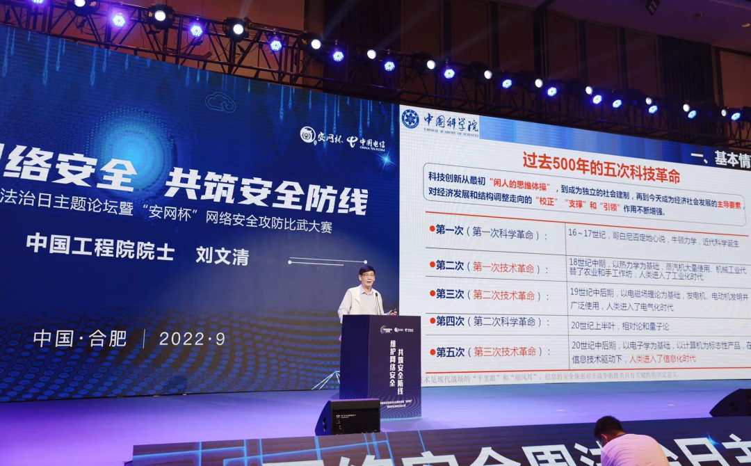 法治日(rì)主題論壇由中國(guó)工(gōng)程院院士劉文清領銜,來(lái)自(zì)中國(guó)科(kē)學技術(shù)大(dà)學、公安部網絡安全保衛局、安徽大(dà)學、安徽公安院校(xiào)、中國(guó)電信的專家學者圍繞網絡技術(shù)、網絡安全、網安法律法規、網絡治理(lǐ)等進行了主題演講,号召共建網絡安全、共享網絡文明。