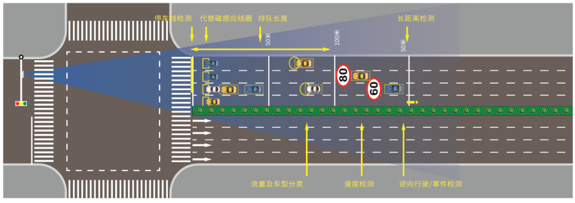 超遠(yuǎn)信息路(lù)口流量雷達采用主動掃描式陣列雷達技術(shù),相(xiàng)比于傳統檢測器性能更強大(dà),可(kě)以全天候工(gōng)作(zuò),不受外界因素幹擾,實時檢測多個目标的即時速度、運動方向、即時坐(zuò)标及車流量、平均速度、車道占有率、車輛(liàng)排隊長度、車輛(liàng)排隊數量等數據,爲路(lù)口自(zì)适應優化控制、交通規劃設計(jì)、交通配時優化、交通管控及城(chéng)市大(dà)腦等提供實時、準确、可(kě)靠的微觀數據。