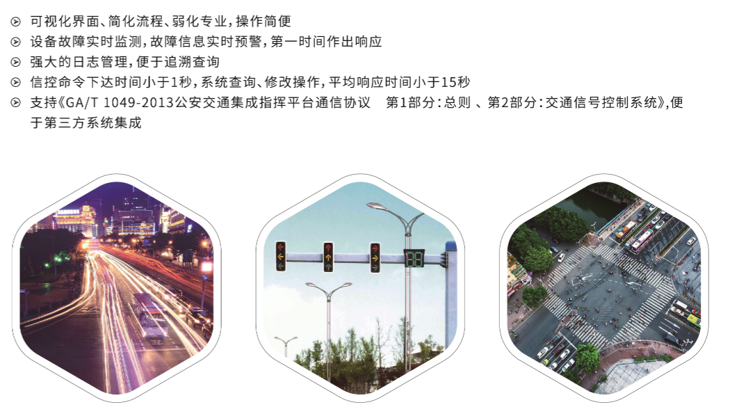 ·基于GIS地圖、路(lù)口渠化、路(lù)口視頻等實現路(lù)口信号機(jī)設備的在線狀态和路(lù)口信号的可(kě)視化監控
