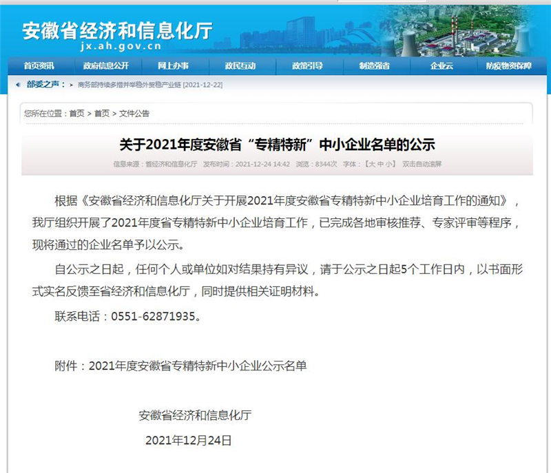 近日(rì),安徽省經信委公布了2021年(nián)省級“專精特新”企業名單。超遠(yuǎn)信息榮獲省級“專精特新”企業榮譽稱号。