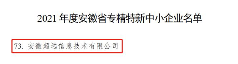 喜報!熱(rè)烈祝賀超遠(yuǎn)信息榮獲安徽省專精特新企業稱号