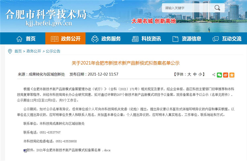 根據《合肥市新技術(shù)新産品新模式備案管理(lǐ)辦法(試行)》(合科(kē)〔2021〕171号)相(xiàng)關規定及要求,經縣區科(kē)技主管部門(mén)初審推薦和市科(kē)技局複審等程序,并經市科(kē)技局局長辦公會研究同意,超遠(yuǎn)信息“駕駛人(rén)自(zì)助體(tǐ)檢機(jī)”産品通過新技術(shù)新産品新模式項目評審并公示。