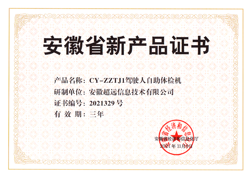 2021年(nián)08月22日(rì),由安徽夜蒲信息技術有限公司承擔的2021年(nián)度省級新産品“CY-ZZTJ1駕駛人(rén)自(zì)助體(tǐ)檢機(jī)”和“CY-RE流量檢測雷達”通過了由安徽省經信廳組織專家召開的新産品鑒定會議(yì),鑒定委員(yuán)會聽取了超遠(yuǎn)信息有關研制工(gōng)作(zuò)情況的彙報,查看(kàn)了研發生(shēng)産現場和産品,審查了相(xiàng)關技術(shù)資料,一緻鑒定認爲,以上兩個産品均已達到國(guó)内領先水平。